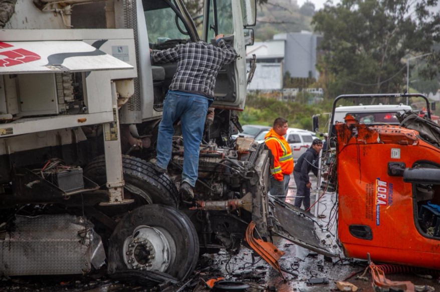 Un aparatoso accidente se registró sobre el Bulevar Cuauhtémoc Sur, a la altura del Fraccionamiento Monterrey, cuando un camión que transportaba concreto presuntamente se quedó sin frenos al descender por la vialidad y se impactó de frente contra un tráiler.
