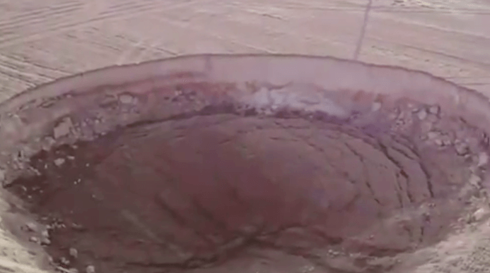 Un cráter de entre 12 y 15 metros de profundidad y 100 metros de diámetro se formó repentinamente en un campo despejado en la localidad de Karapinar, en la provincia turca de Konya, informa Anadolu. pic.twitter.com/aeI17GRClf