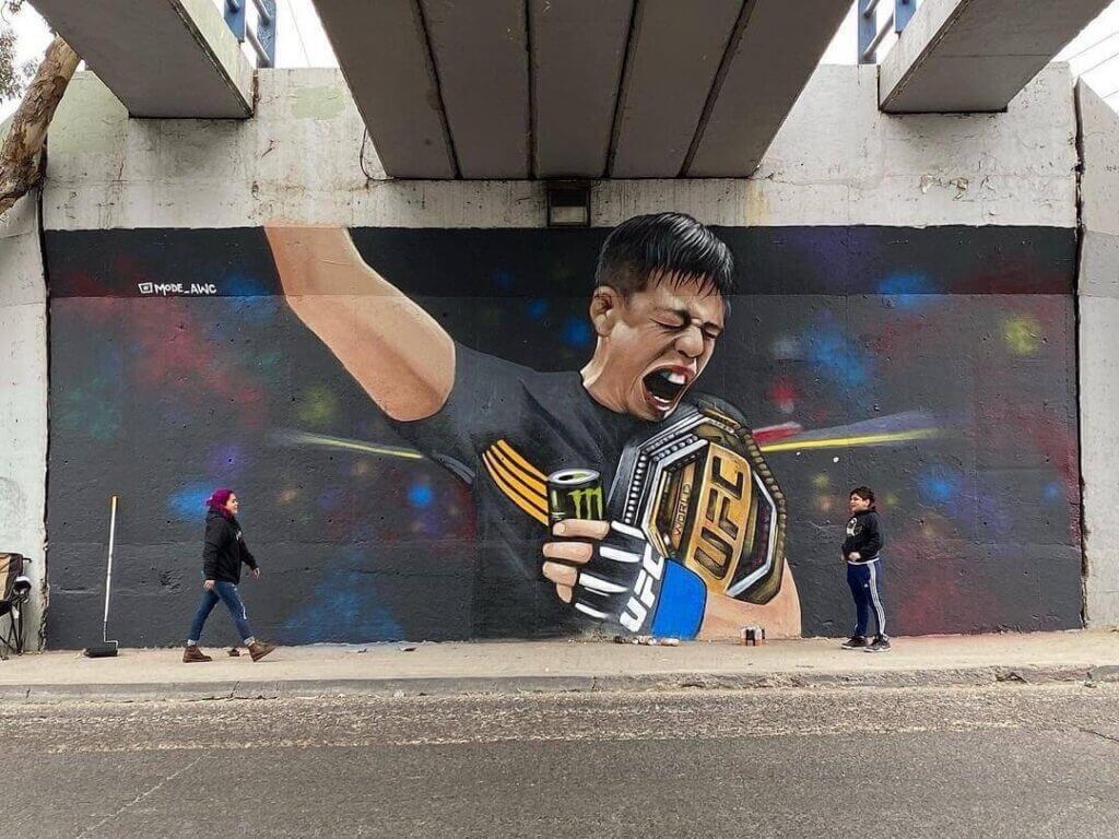 Luego del contundente triunfo por sumisión, conseguido el día de ayer en la Ultimate Fighting Championship (UFC) 263, por el mexicano Brandon Moreno, ante Deiveson Figueiredo, artistas celebraron la hazaña del nuevo campeón con un mural, plasmando las emociones tras la victoria.
