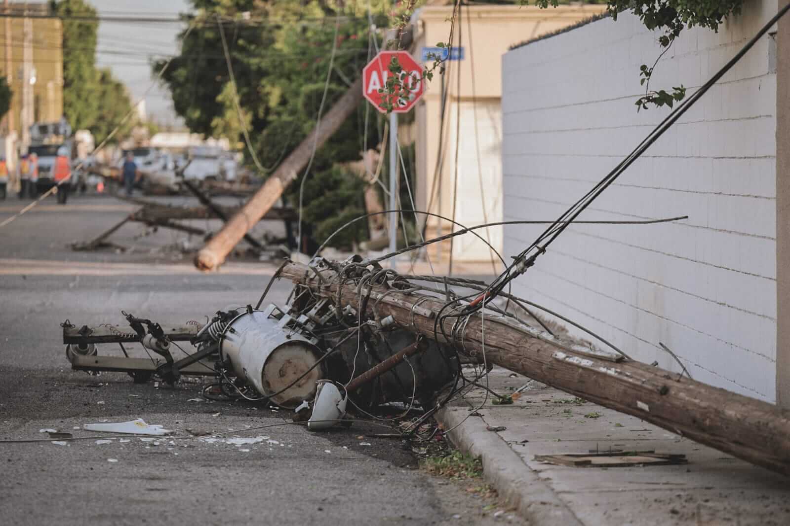 Fueron al menos siete postes y cuatro transformadores los que cayeron en Mexicali, dejando a residentes de la colonia Vista Hermosa sin luz, aunque afortunadamente no hubo personas heridas, y solamente algunos daños materiales.
