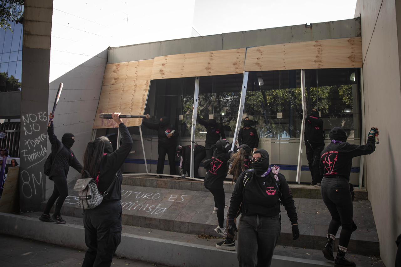 Durante la manifestación por el Día Internacional de la Mujer, el denominado «bloque negro» retiró las vallas colocadas en el exterior de la Fiscalía, realizó pintas con diferentes consignas y causó destrozos en ventanales y mobiliario, lo que desató preocupación entre colectivos y organismos jurídicos por una posible afectación a los procesos legales.