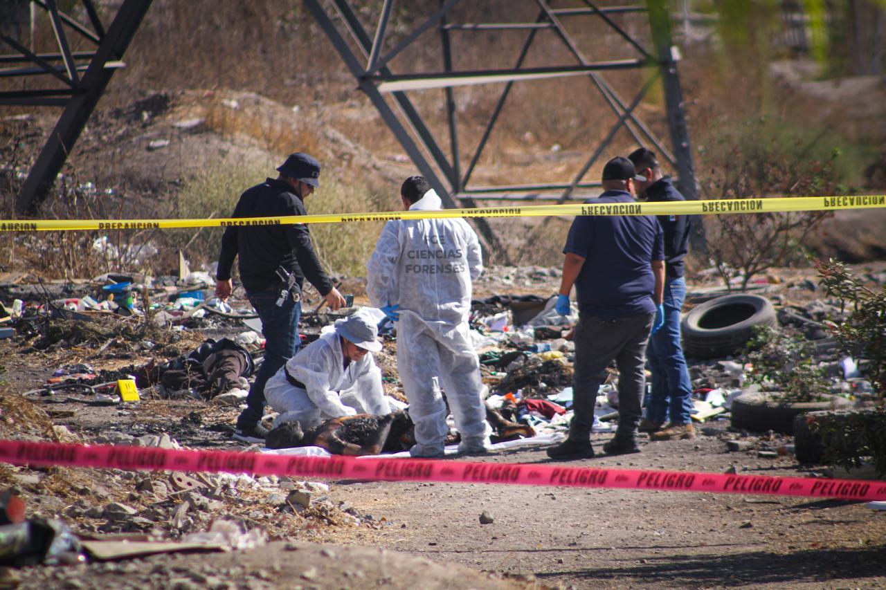 Uno de los cuerpos se encontraba a medio calcinar, mientras que el otro presentaba impactos de arma de fuego.