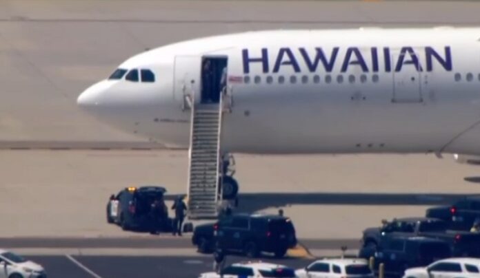 Autoridades investigan a un hombre que viajaba en la aeronave con destino a Honolulu.