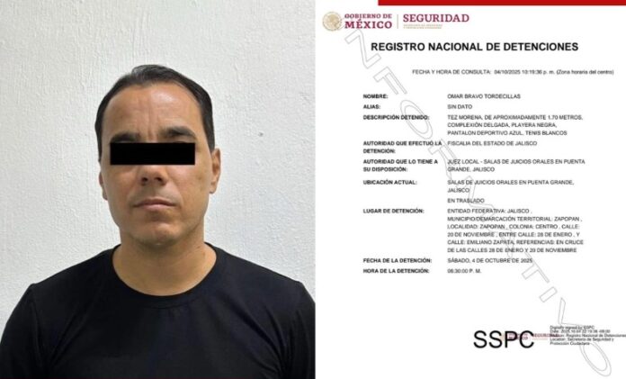 Omar Bravo Tordecillas, exfutbolista y máximo goleador del club Guadalajara, fue detenido el sábado por el presunto delito de abuso sexual infantil agravado. La Fiscalía de Jalisco informó que la captura se realizó en el centro de Zapopan por policías de investigación especializados.