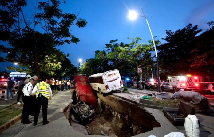 Equipos de emergencia y autoridades municipales evalúan los daños mientras comienzan los trabajos para determinar las causas del socavón y realizar las reparaciones necesarias en esta importante arteria vial.