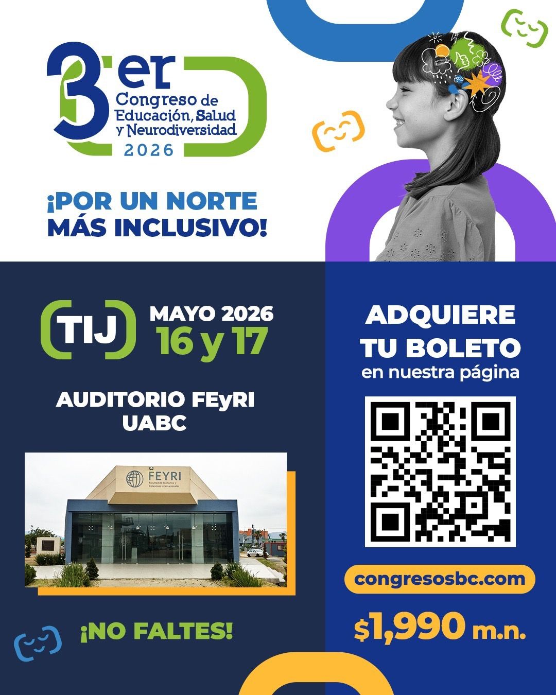 El “3er Congreso Internacional de Educación, Salud y Neurodiversidad” se llevará a cabo los días 16 y 17 de mayo en el Teatro FEyRI de la Universidad Autónoma de Baja California en Tijuana, donde especialistas, familias y profesionales se reunirán para analizar los principales retos en la atención a personas neurodivergentes. El evento fue anunciado por el Comité de Turismo y Convenciones de Tijuana, que destacó el impacto social y académico del encuentro.