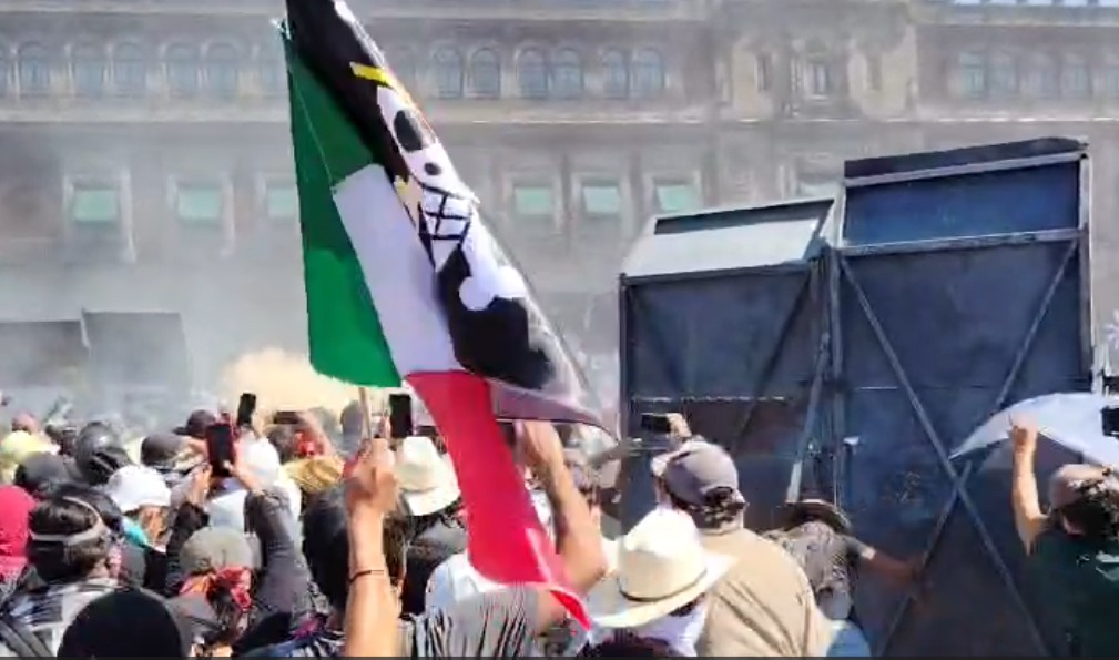Se reportan enfrentamientos menores entre manifestantes y elementos de seguridad en las inmediaciones de la plaza constitucional. El acceso a estaciones del Metro cercanas fue restringido como medida preventiva.