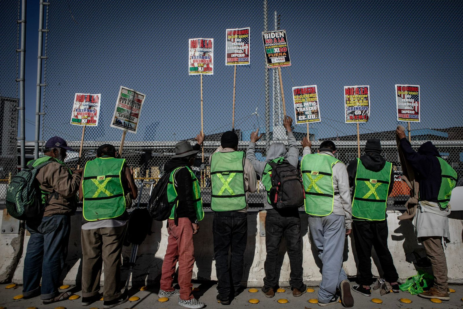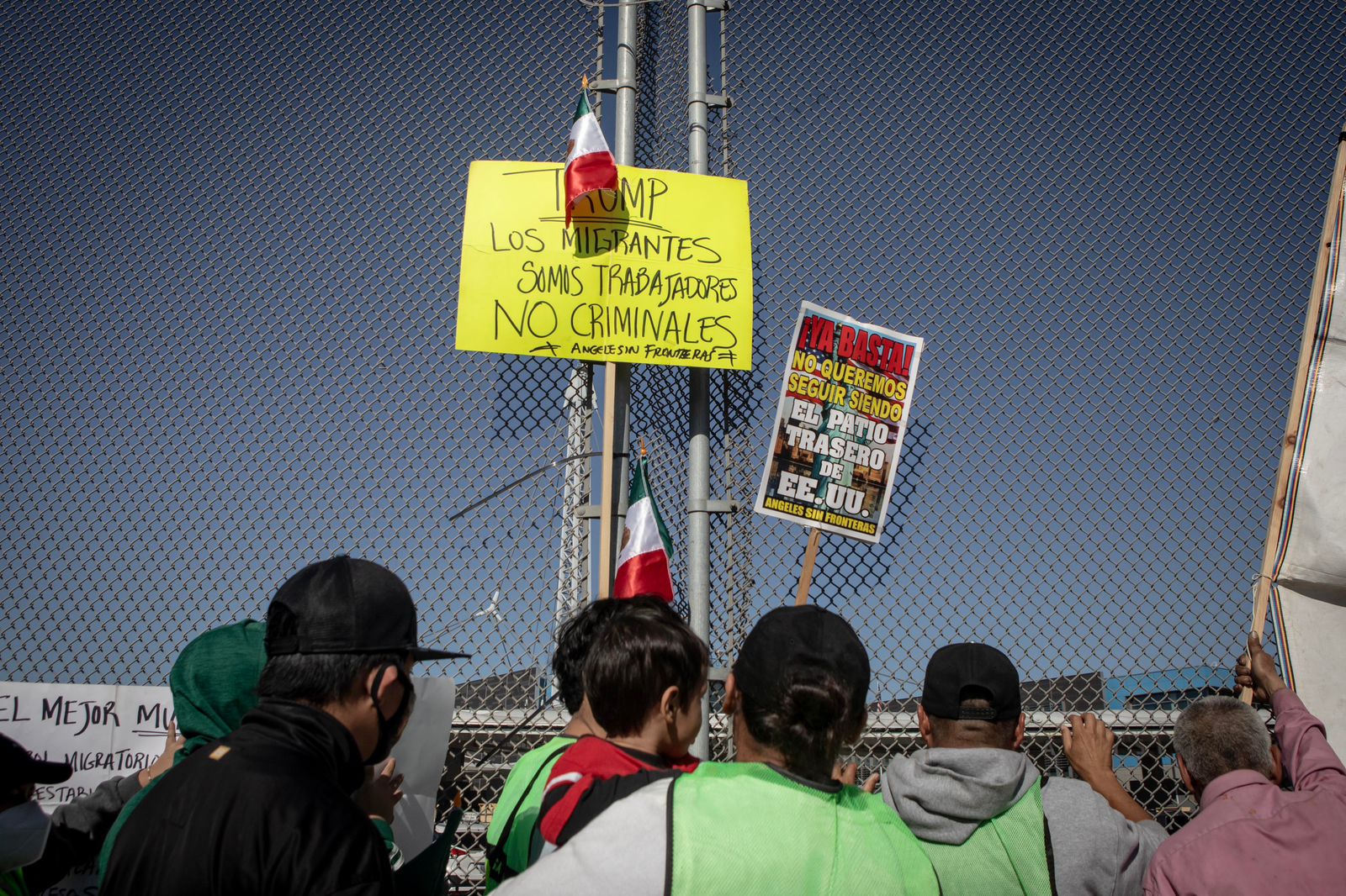 Portando chalecos fosforescentes, el grupo, compuesto por niños, mujeres y hombres, llegó hasta la división entre México y Estados Unidos con pancartas que decían: “Necesitamos puentes, no muros” y “A México se le respeta: Claudia Sheinbaum”.