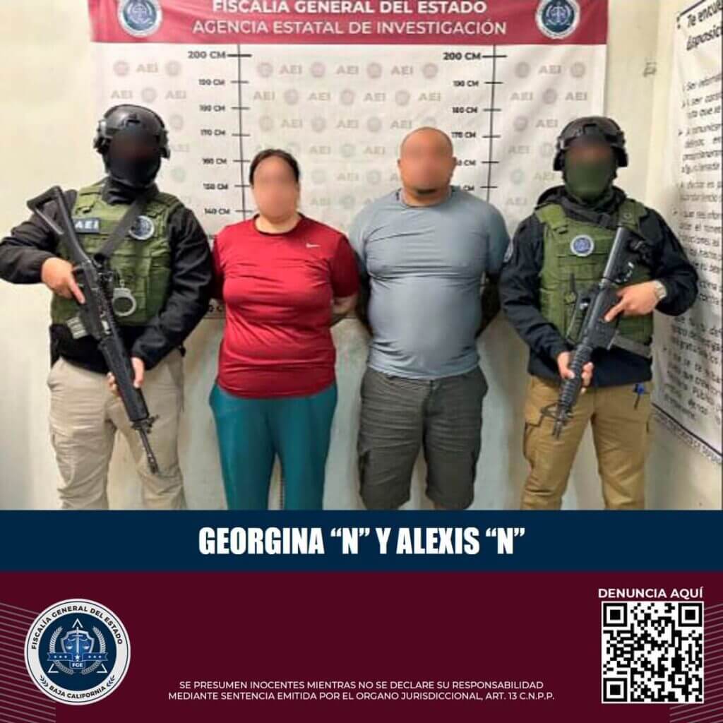 Georgina “N” y su esposo Alexis “N” fueron detenidos por el delito de sustracción de menores en Tijuana, luego de que el pasado 7 de mayo la mujer fuera captada robándose a una bebé de tres semanas de nacida en una tienda Soriana en Zona Centro.