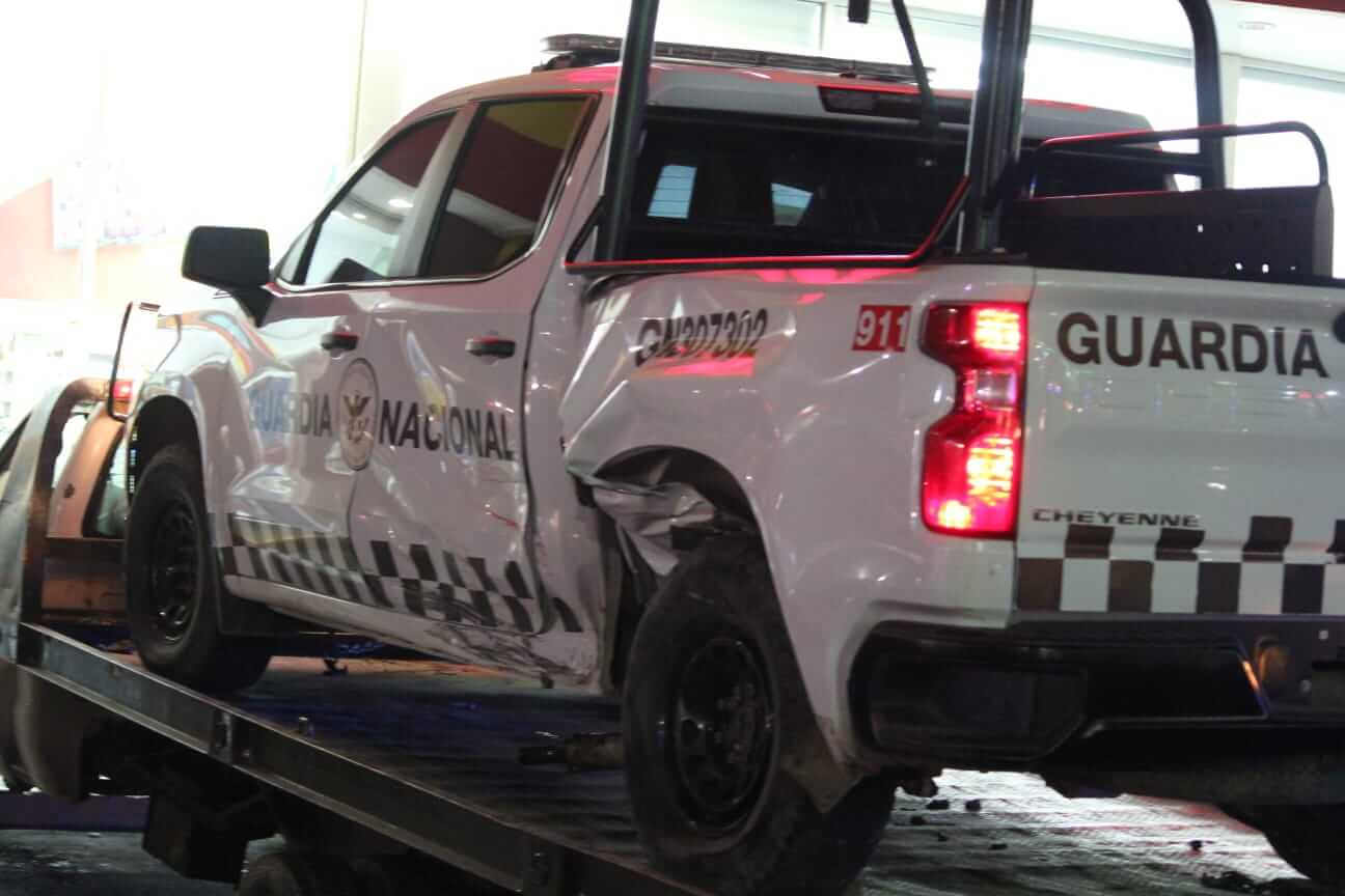 En el percance se vio involucrada una patrulla de la guardia nacional con varios elementos a bordo, así como otros dos vehículos compactos de color gris y rojo.