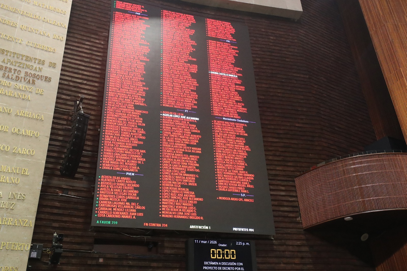 El pleno de la Cámara de Diputados desechó este miércoles el dictamen de la reforma electoral propuesta por la presidenta Claudia Sheinbaum, al no alcanzar la mayoría calificada requerida. La votación registró 234 votos en contra de PT, PVEM, PAN, PRI y MC, 259 a favor de Morena y una abstención, sin que se abriera debate en lo general, solo con posicionamientos de los coordinadores parlamentarios.