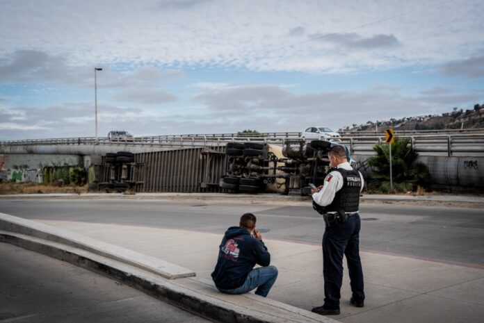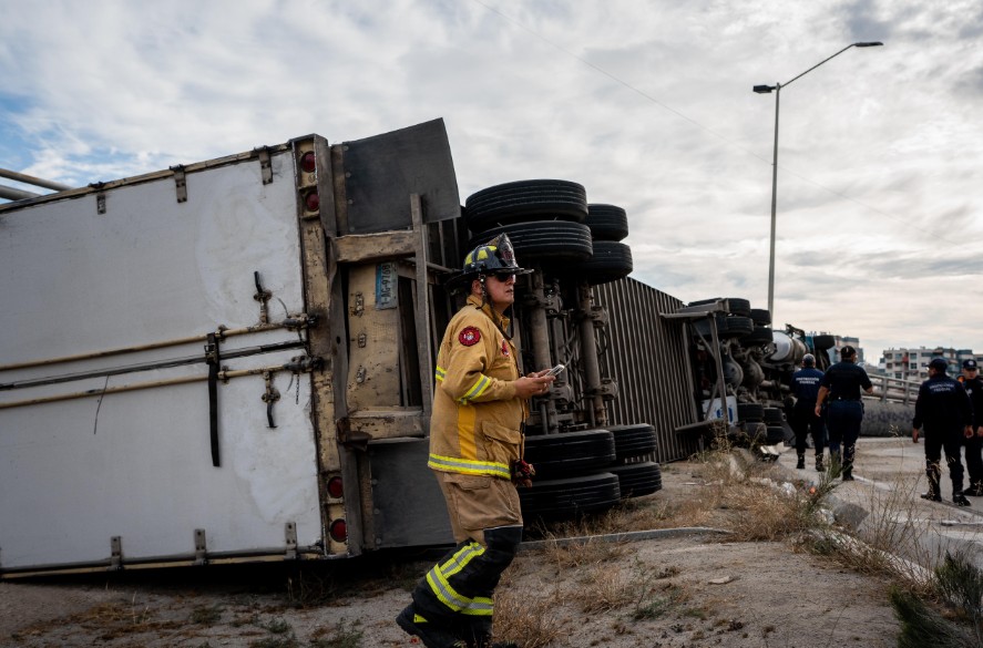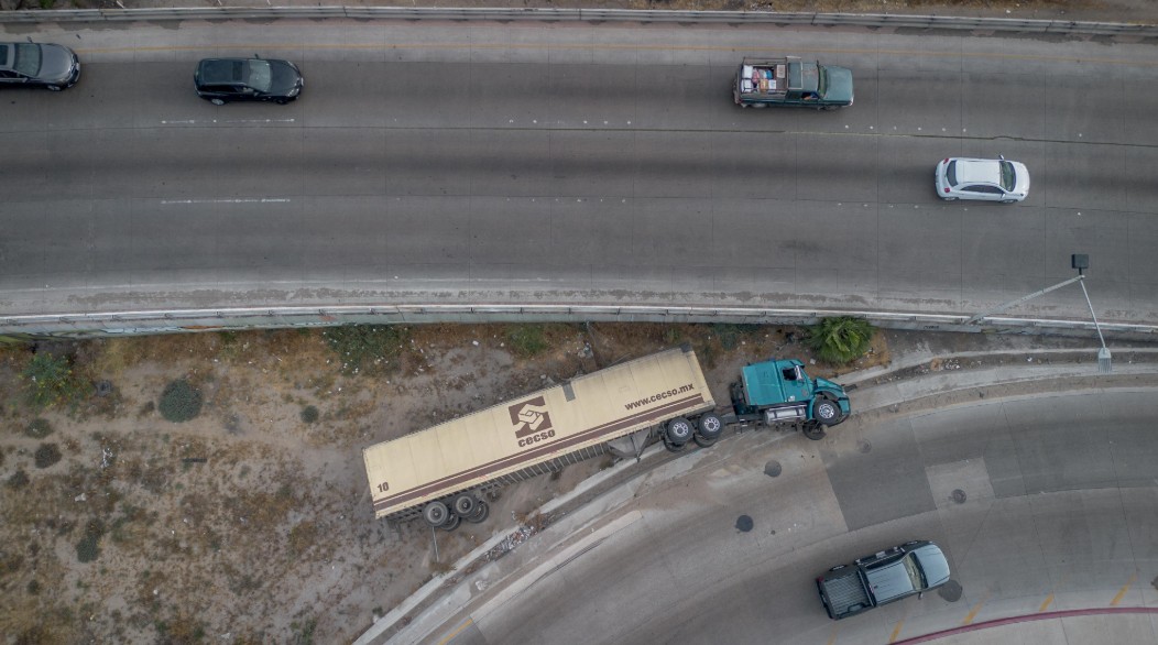 Un tráiler volcó la mañana de este sábado en la intersección que conecta la Vía Rápida Oriente con la Vía Rápida Alamar, a un costado de la plaza comercial Península. El conductor de la unidad sufrió lesiones leves y fue atendido en el sitio por personal de emergencia, sin requerir traslado hospitalario.