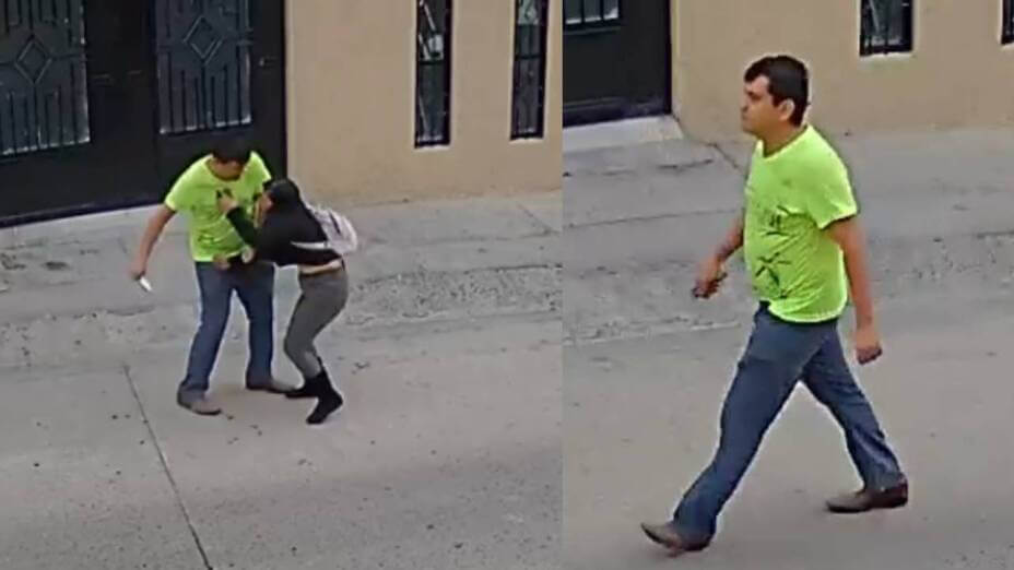A través de un video captado por cámaras de vigilancia se aprecia el trágico momento en el que apuñalan a una mujer en León, en la calle.