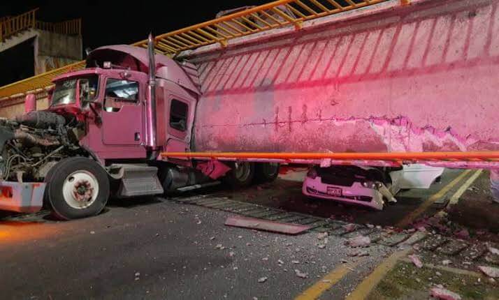 Un camión de carga derribó un puente peatonal en la carretera México-Texcoco, en la entrada a Cuautlalpan, así lo informó la alcaldesa Sandra Luz Falcón, quien de manera preliminar dijo que afortunadamente no se reportan víctimas.