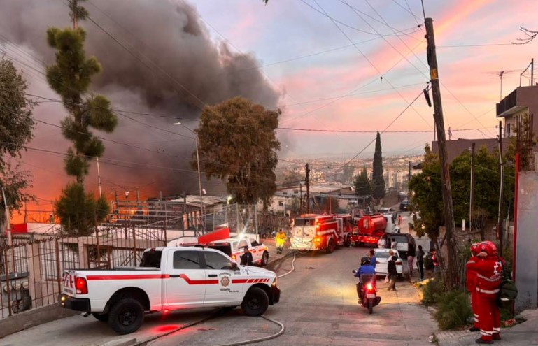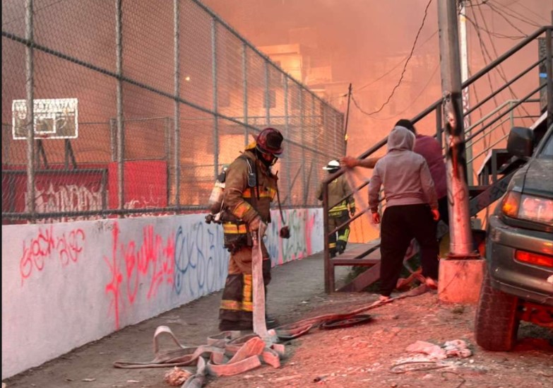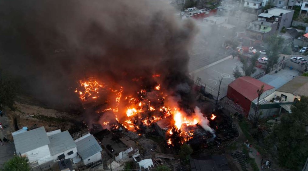 Voraz incendio arrasó con seis casas en la colonia Leandro Valle de Tijuana.